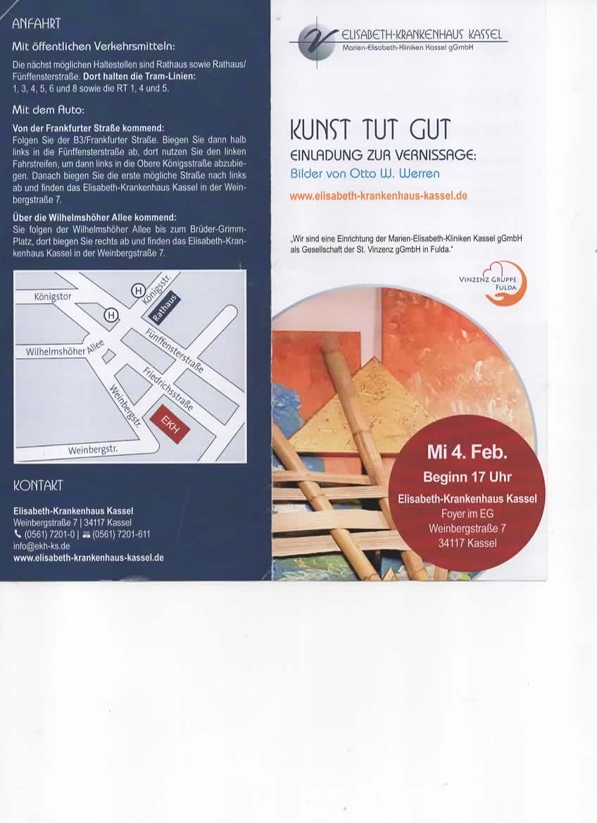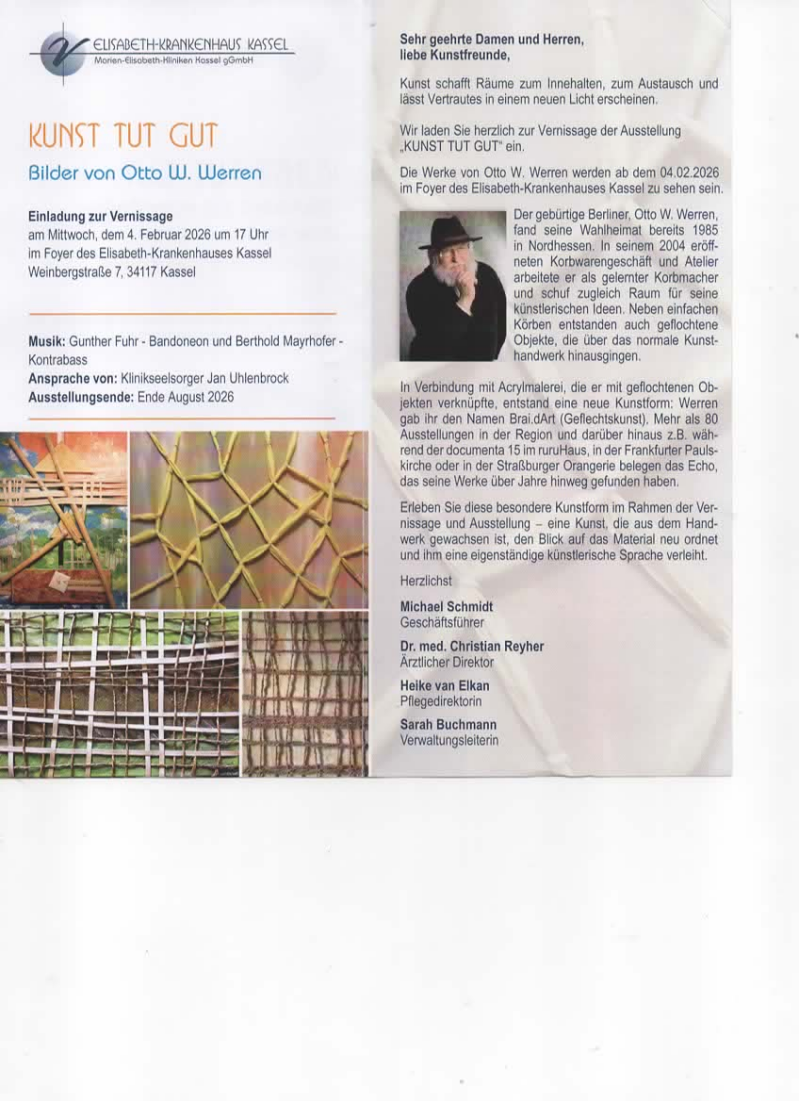 Die erste Vernissage ist am 04. Februar 2026 gegen 17:00 Uhr im Elisabeth-Krankenhaus in Kassel.